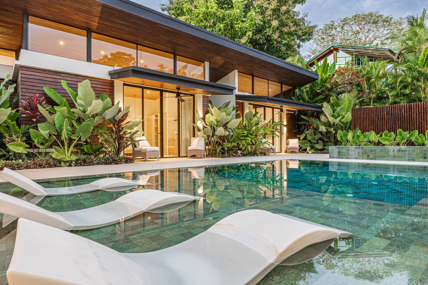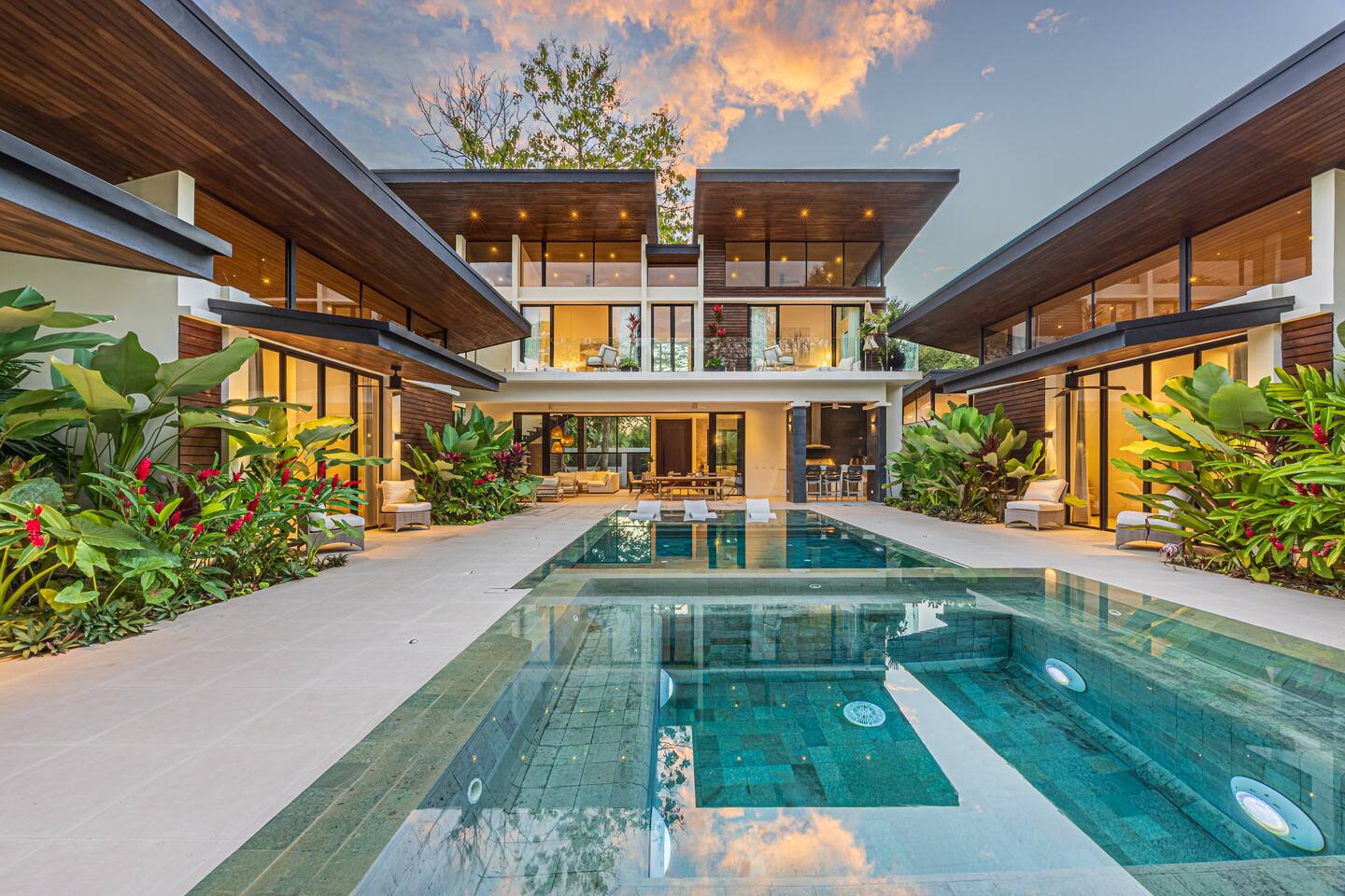 Bienvenidos to Casa Etherea, a luxurious private retreat in Nosara. Perfect for groups up to twenty, the estate features a spacious main house with two master suites overlooking the pool, plus four private casitas. Enjoy elegant indoor and outdoor living, a resort-style pool with built-in loungers and a jacuzzi. Located just minutes from the beach and shops, it offers comfort, privacy, and an unforgettable stay. Enjoy serene nature, modern amenities, and effortless comfort throughout your stay!