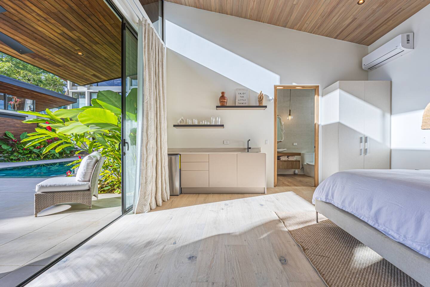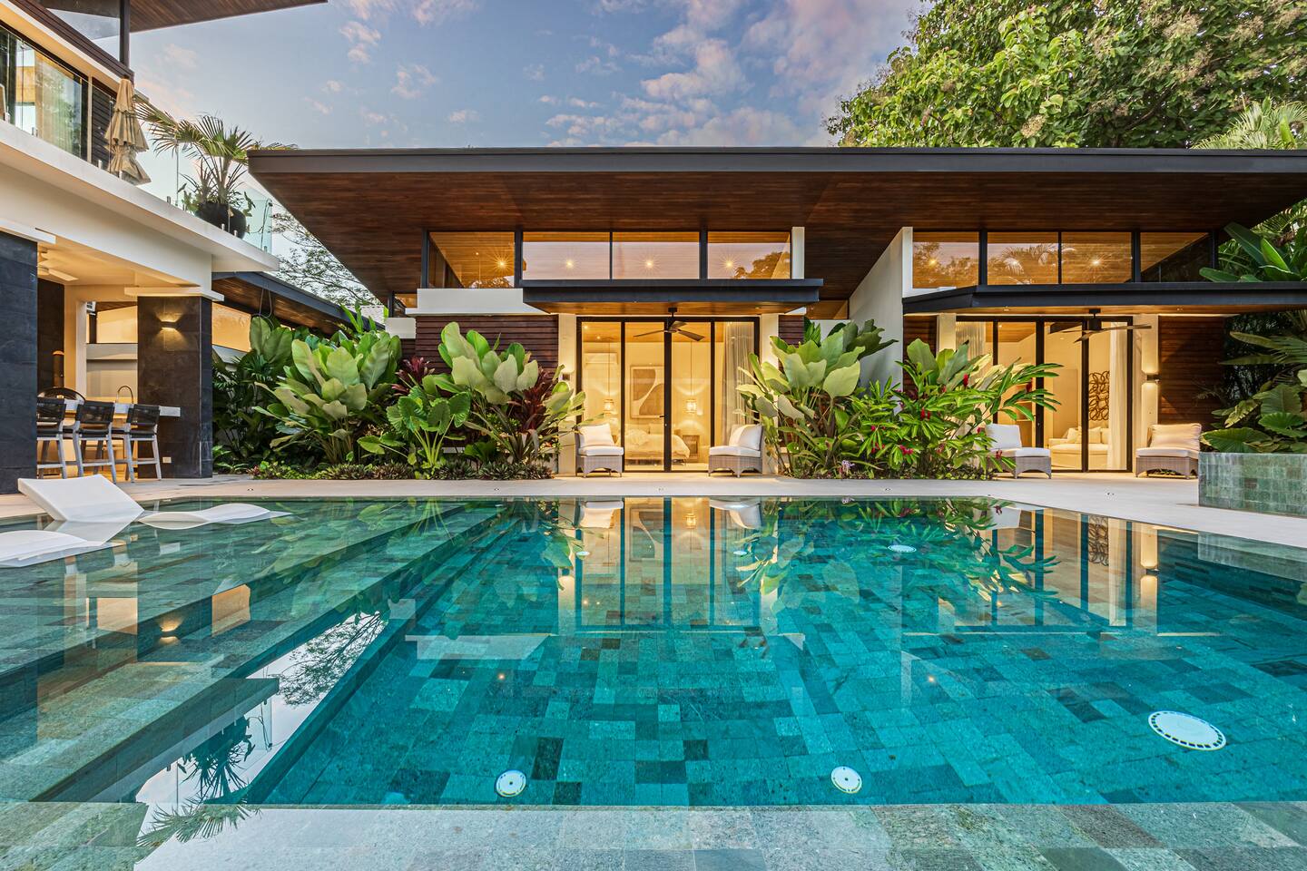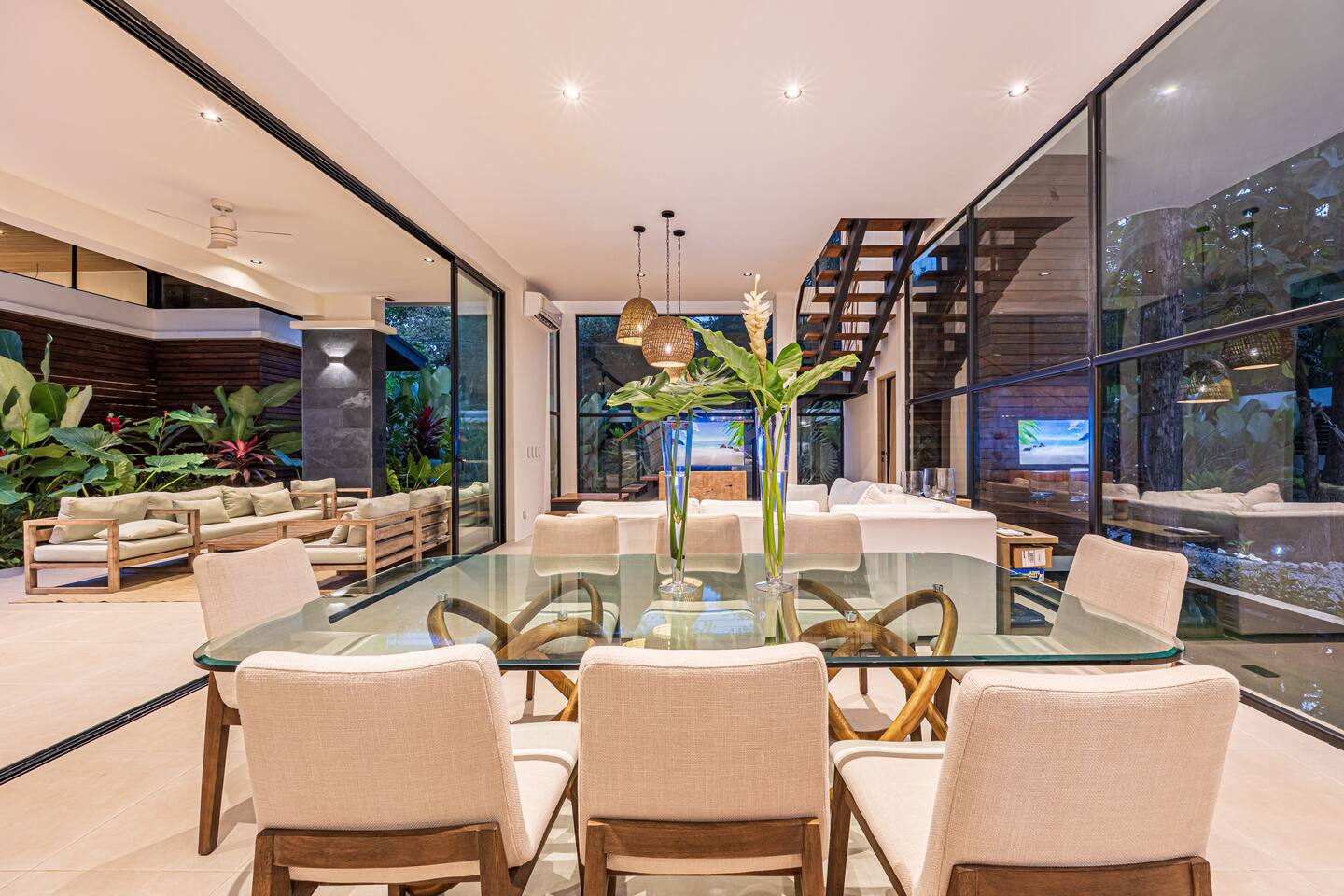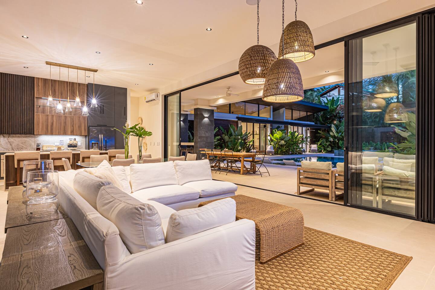 Built in 2024, Casa Etherea is a modern, luxurious villa offering all the comforts of home, set against a lush, beautifully landscaped backdrop in a quiet community. Enjoy both indoor and outdoor kitchens and dining areas, creating a secure, private, and relaxing environment just steps from everything you may need. The four independent casitas each feature a queen bed and a sofa bed—perfect for families. The main house includes two master bedrooms, each with its own balcony overlooking the pool.