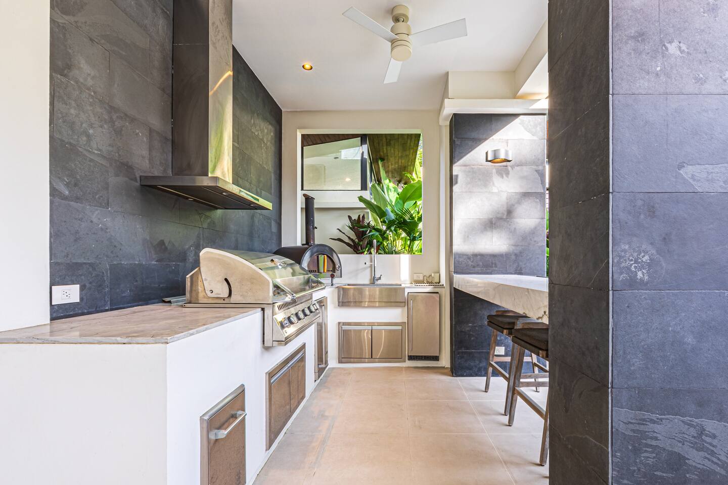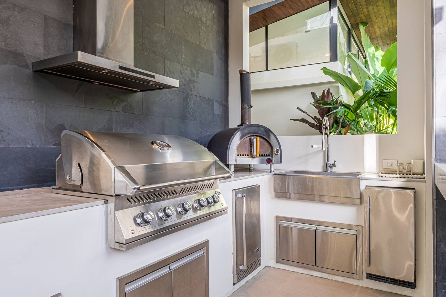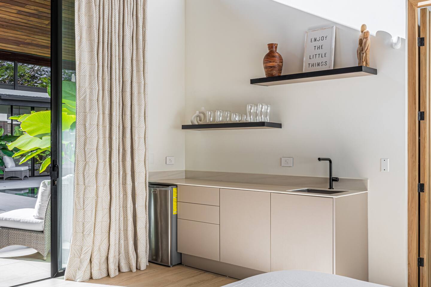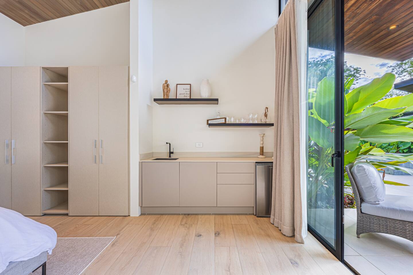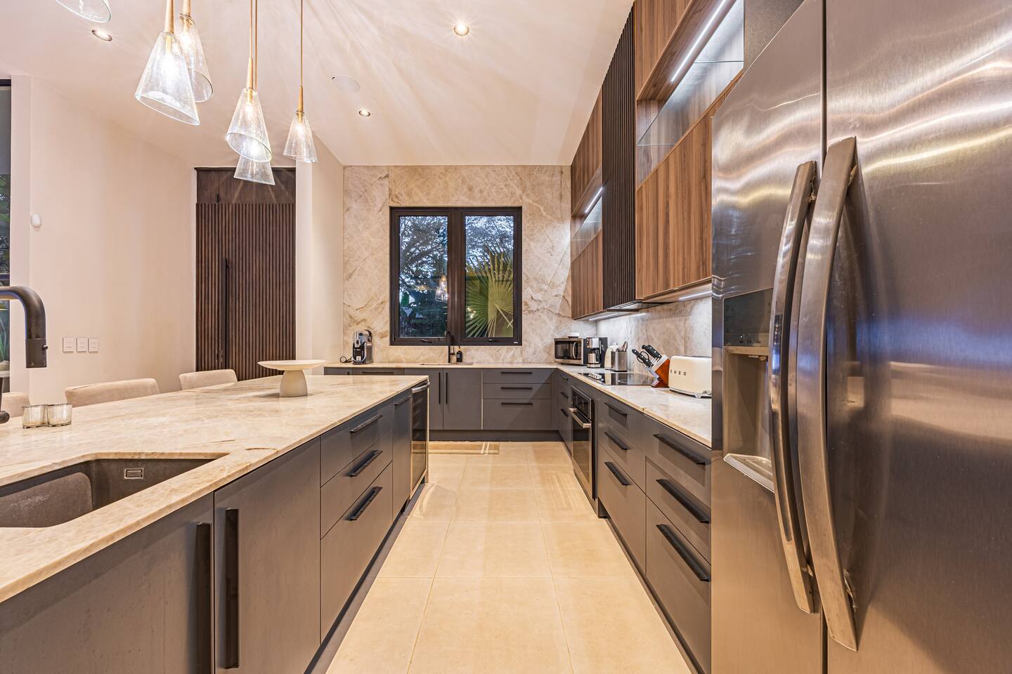 Built in 2024, Casa Etherea is a modern, luxurious villa offering all the comforts of home, set against a lush, beautifully landscaped backdrop in a quiet community. Enjoy both indoor and outdoor kitchens and dining areas, creating a secure, private, and relaxing environment just steps from everything you may need. The four independent casitas each feature a queen bed and a sofa bed—perfect for families. The main house includes two master bedrooms, each with its own balcony overlooking the pool.